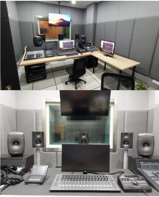 本项目包含了两间录音棚(简称为棚1与棚2),其中棚1为5.1.4的监听配置,支持杜比全景声制作;棚2为5.1的监听配置。